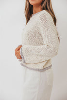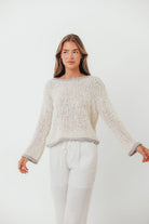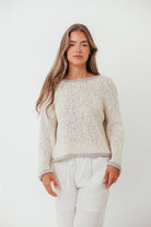 GARMENT DETAILS: Soft and cozy relaxed sweater with long sleeves, dropped shoulders, and raw rolled edge.