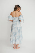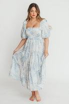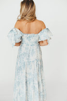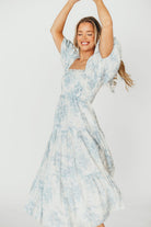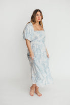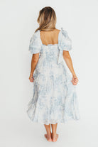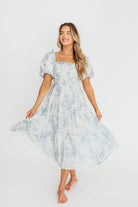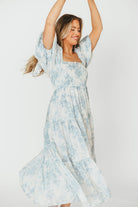 Elena Floral Print Smocked Midi Dress in Blue - Bump Friendly & Inclusive Sizing