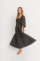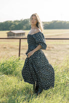The Felicia Midi Dress offers playful charm and a multi-seasonal versatility you'll love! Featuring a fully smocked bodice and 3/4 length puffed sleeves, this gown offers an extra-wide skirt for twirling. Plus it has pockets! 🏆 Add this feminine dress to your closet before she's all gone!