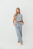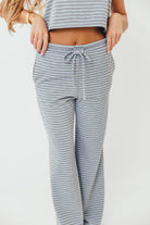 Find Your Soft Striped Top and Flare Pants Set in Grey Blue