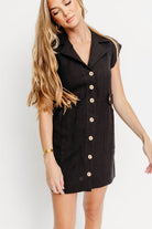 Freya 100% Linen Mini Dress in Black *Final-Sale*