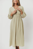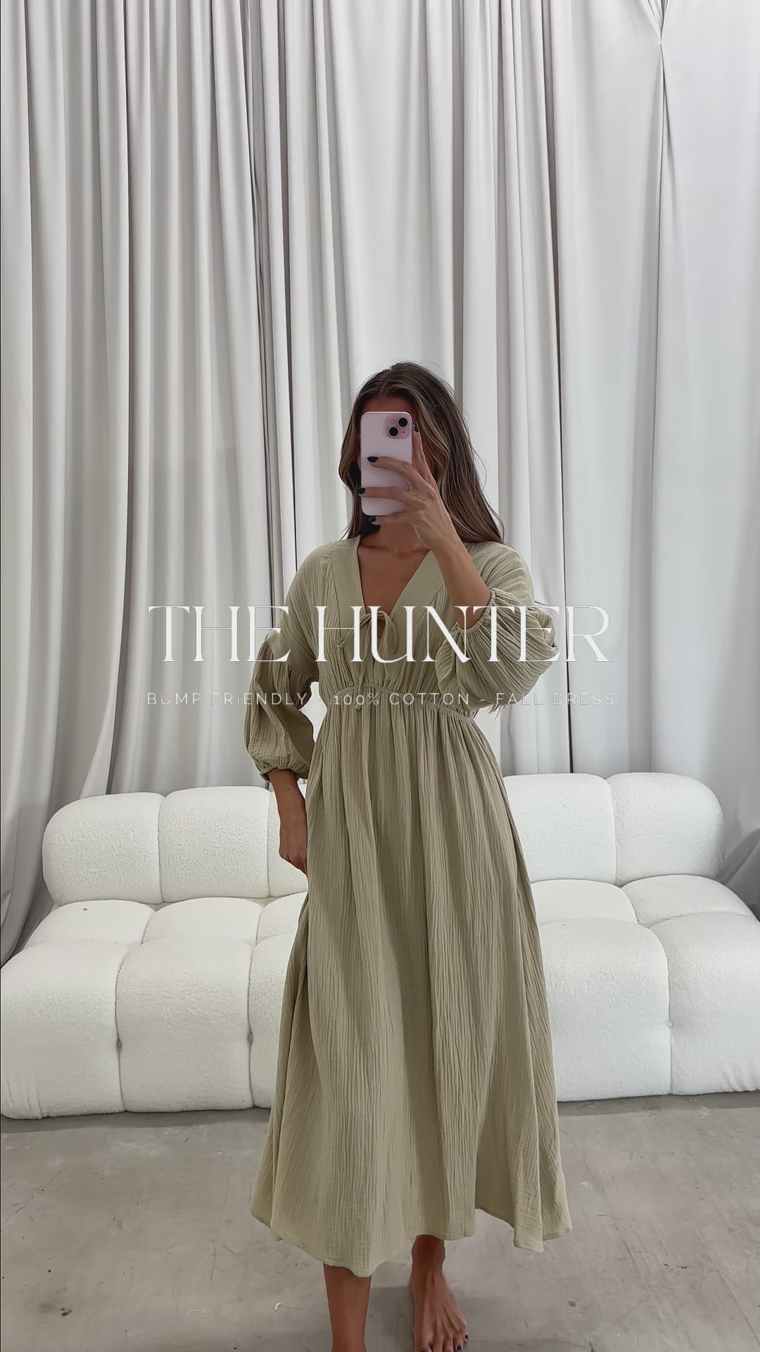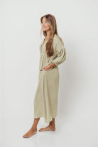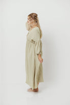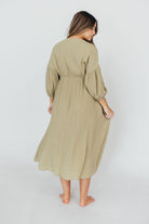 Hunter 100% Cotton Gauze Midi Dress in Thyme - Bump Friendly and Inclusive Sizing