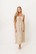 Haley Mae Cotton Floral Embroidered Striped Midi Dress in Sage