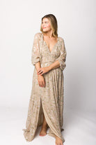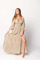 Daphne Long Sleeve Maxi Dress in Beige/Multi Floral - Bump Friendly & Inclusive Sizing (XS-3XL)