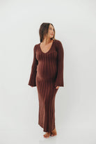 Hearth V-Neck Maxi Dress in Brown - Bump Friendly