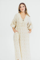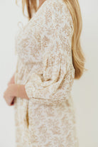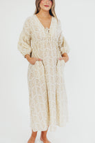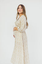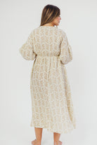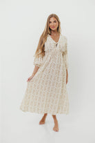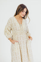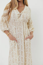 Hunter 100% Cotton Gauze Midi Dress in Natural/Tan Floral - Bump Friendly