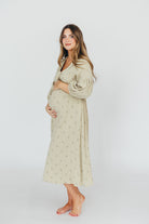 Hunter 100% Cotton Gauze Midi Dress in Thyme/Sage Foliage - Bump Friendly & Inclusive Sizing (XS-3XL)
