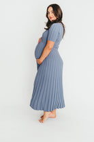 Oakley Ribbed Maxi Dress in Dusty Blue - Bump Friendly *Final-Sale*