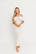 Aston Bow Front Maxi Sweater Dress in Ivory– Bump Friendly & Inclusive Sizing (S-3XL)