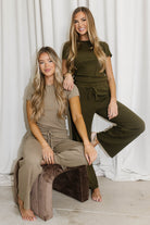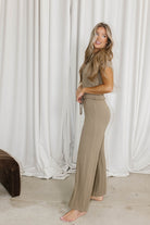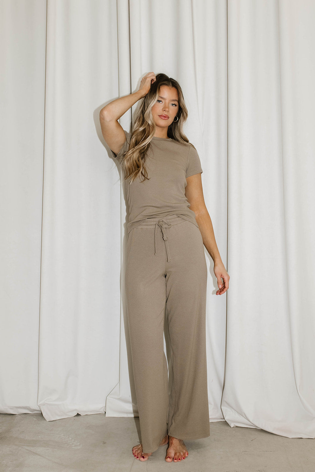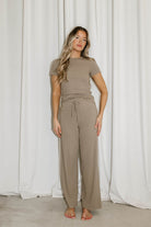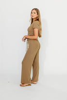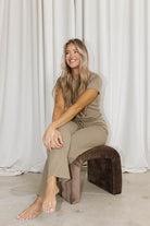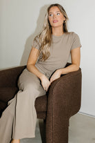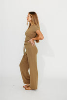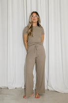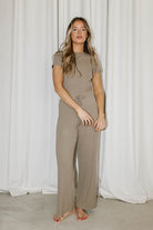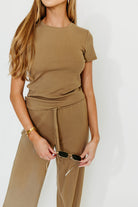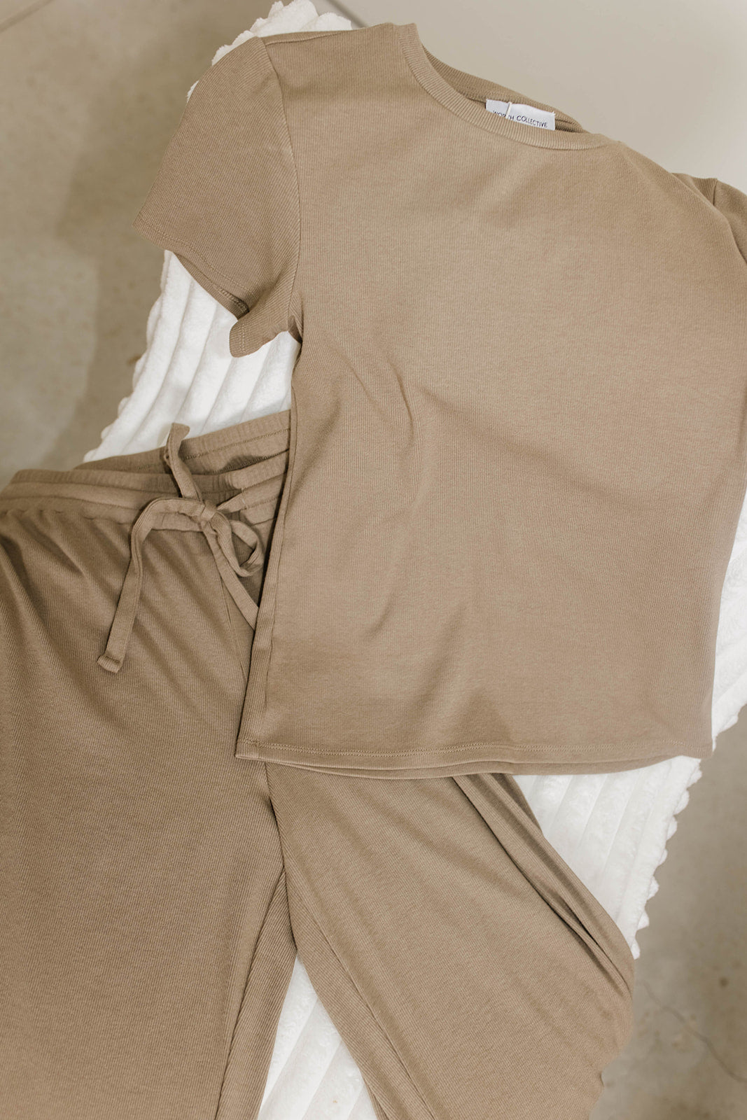 The Muse Knit Ribbed Short Sleeve Top & Pants Set in Mocha *Final-Sale*