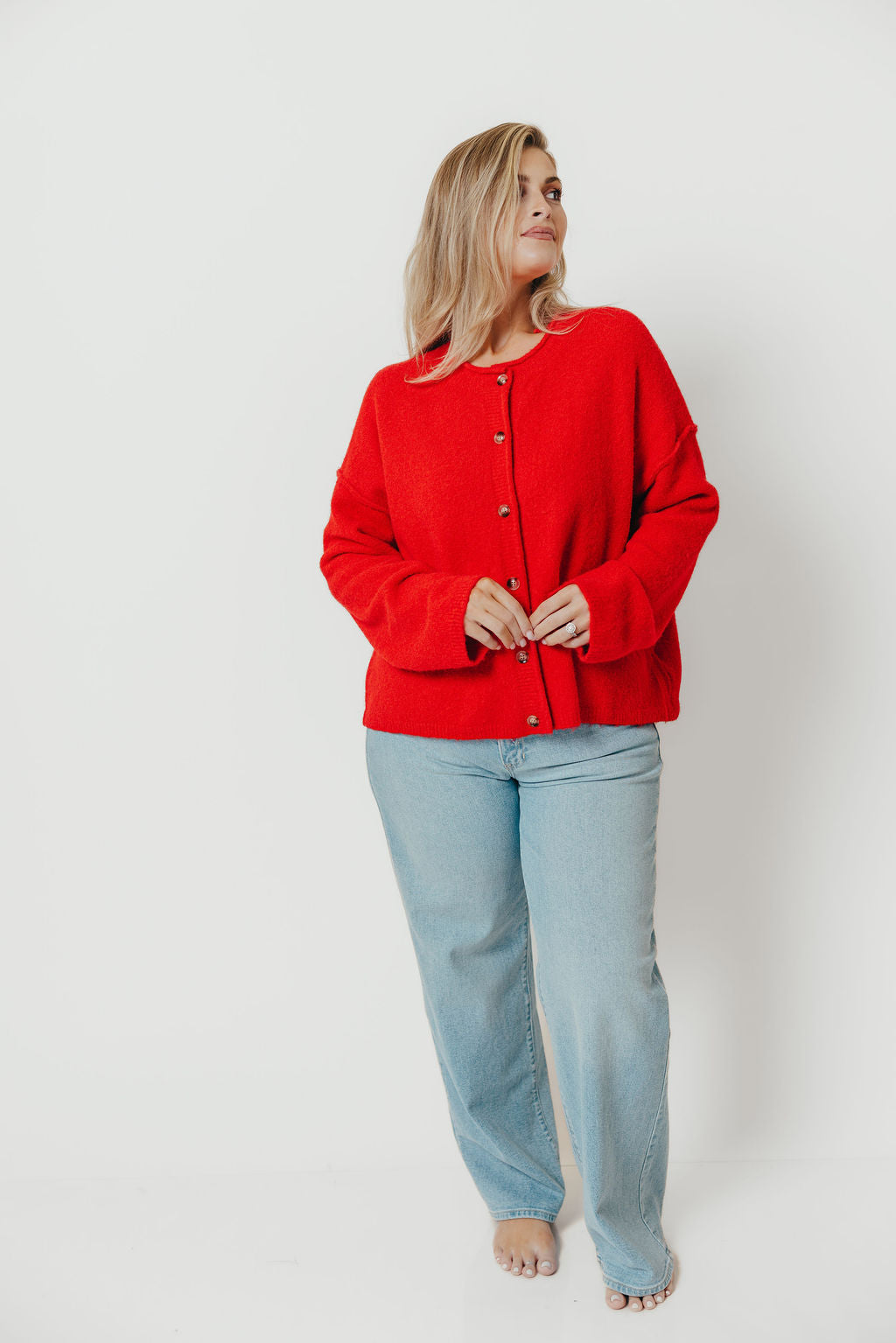 If you're on the hunt for a wear-anywhere cardi that will take you from day to night, the Kyla Cardigan Sweater is your girl. This soft-touch top offers a cozy, premium wool blend and functional front buttons with a trendy raw edge detail. This one's a must-have!