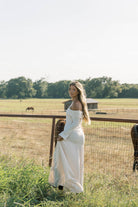 FIT: Runs true to size--fitted through the bodice and waist. Dress runs long and is floor length on our 5'7" models.