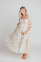 Mona Maxi Dress with Smocking in Cream Floral - Bump Friendly & Inclusive Sizing (S-3XL)