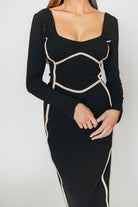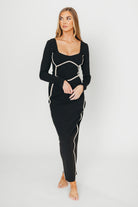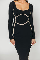 Shana Bodycon Midi Dress with Piping Trim in Black *Final-Sale*