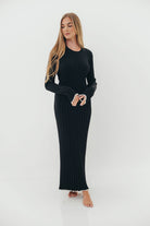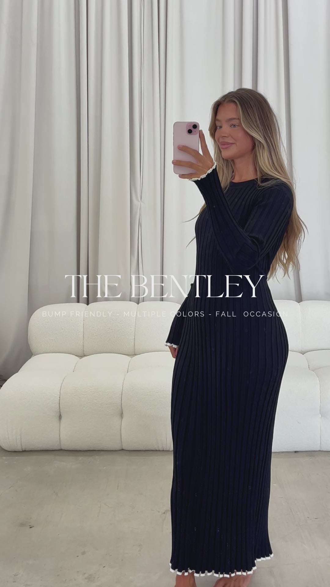 If you buy one knit maxi dress this season, it has to be the Bentley Dress. This gem is the definition of comfortable glamour. Its cozy ribbed knit construction and classic silhouette--rounded neckline, long sleeves, and ultra-feminine fit--will make it a go-to outfit, year after year.
