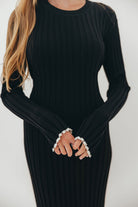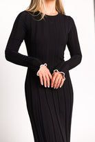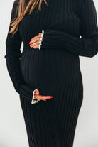 Bentley Ribbed Knit Maxi Dress in Black with White Trim - Bump Friendly