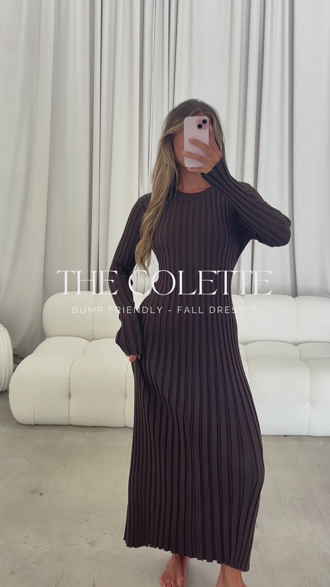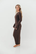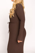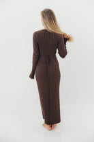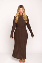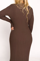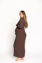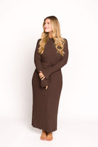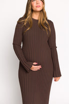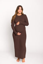 Colette Premium Long Sleeved Ribbed Knit Maxi Dress in Brown - Bump Friendly
