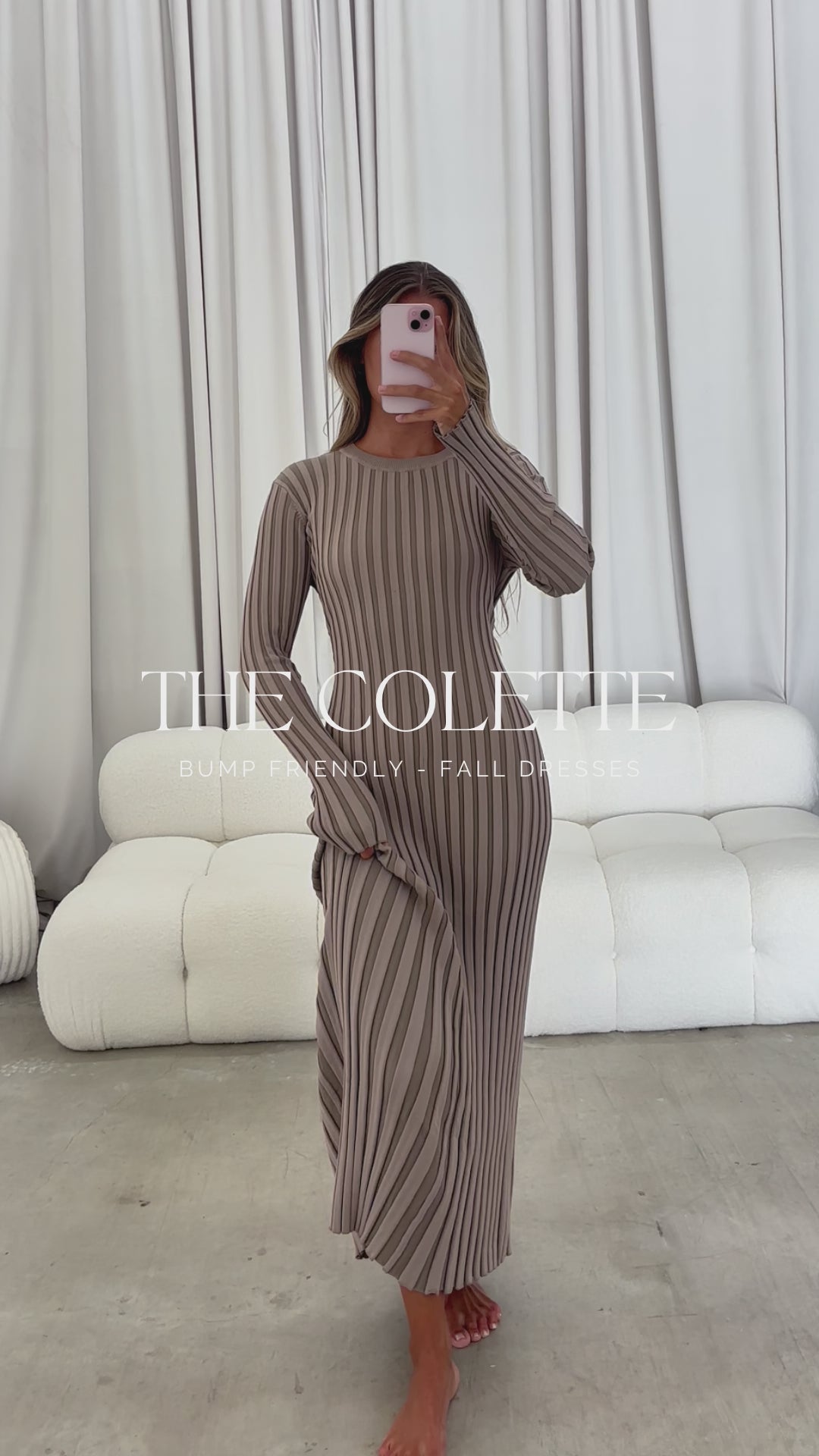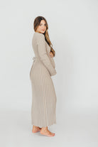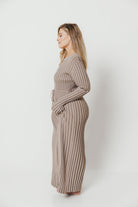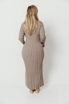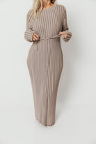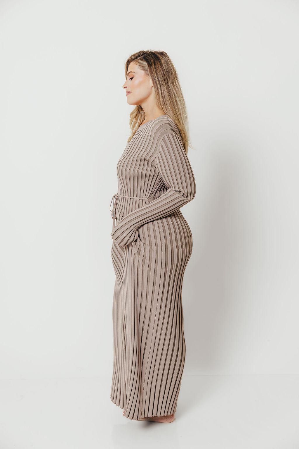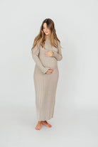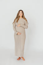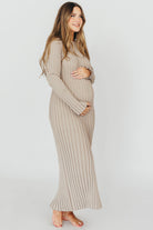 Colette Premium Long Sleeved Ribbed Knit Maxi Dress in Stone - Bump Friendly