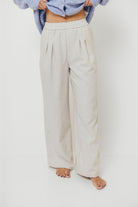 Truett Elastic Band Pleated Wide-Leg Pants in Ivory White