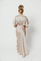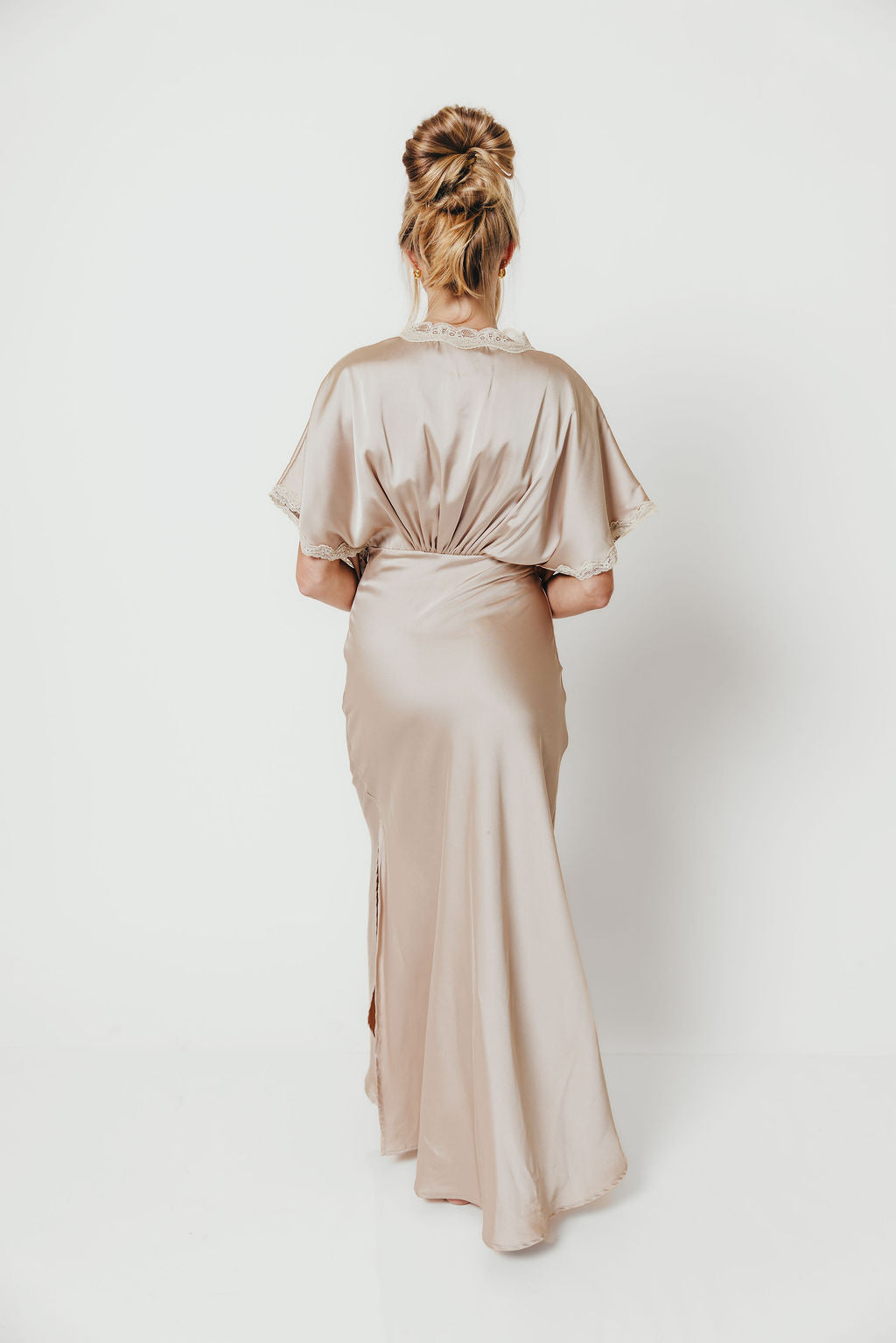 Margot Dull Satin Lace Blouson Maxi Dress in Champagne