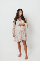 Maui Soft Petals Flare Mini Dress in Cream Multi with Detachable Liner