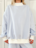 Cynthia Mini Striped Mock Neck Sweatshirt Blue and White