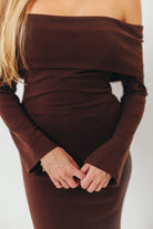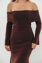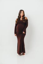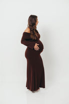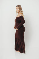 Monroe Maxi Dress with Long Sleeves in Chocolate Brown- Bump Friendly
