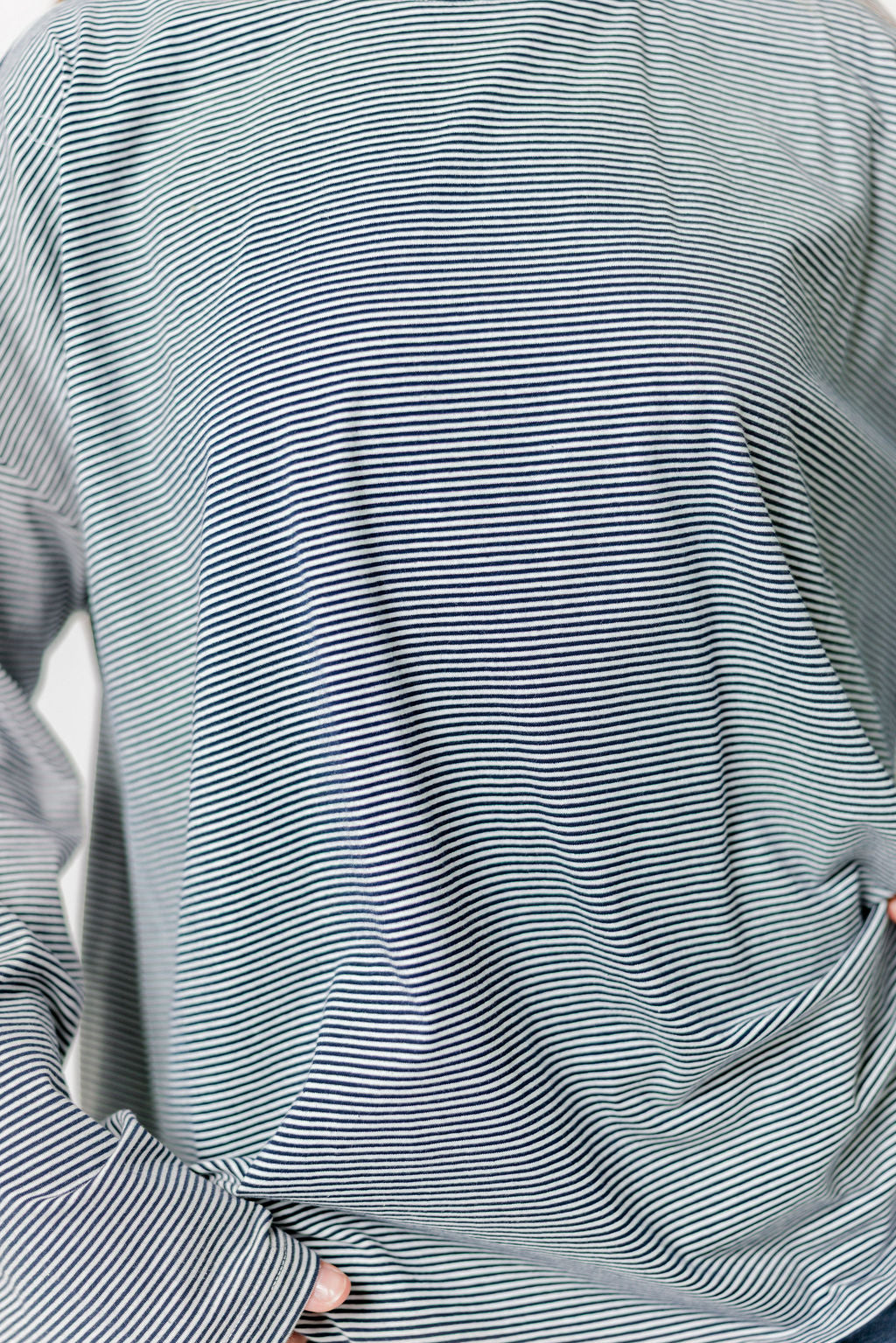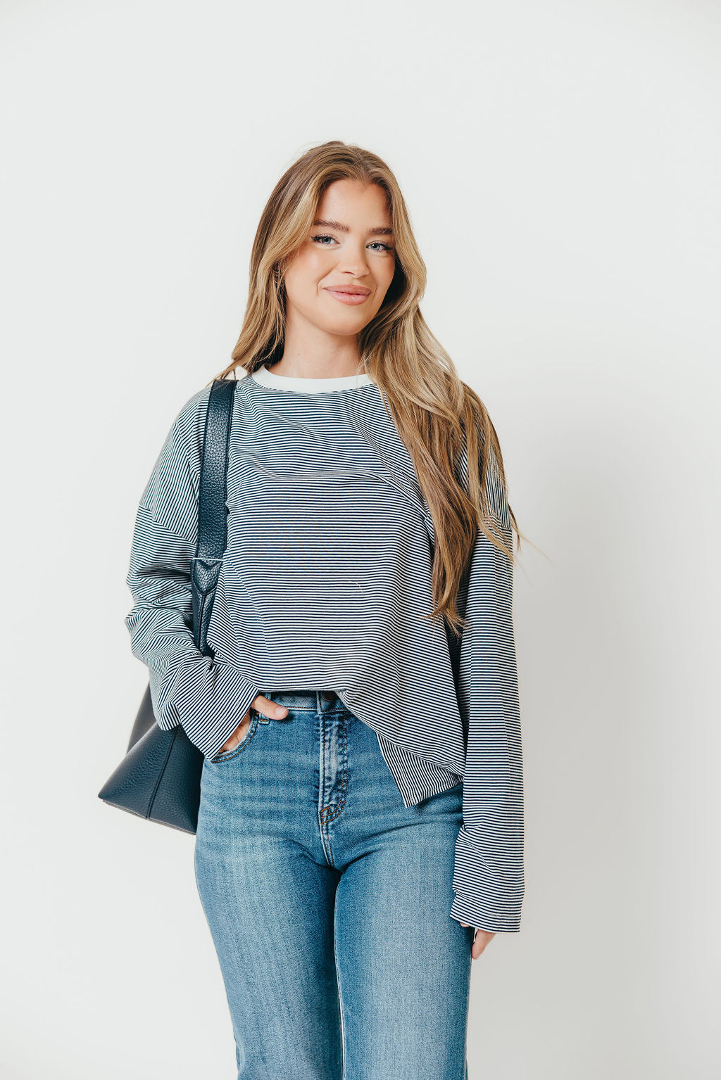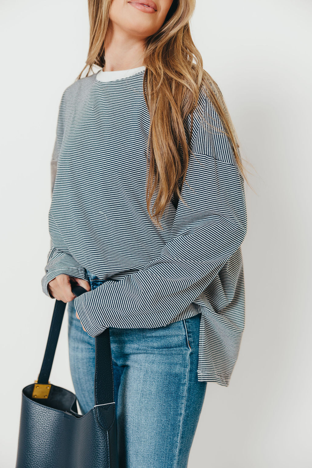 GARMENT DETAILS: Oversized striped knit top with dropped shoulders and contrast color rounded neckline.