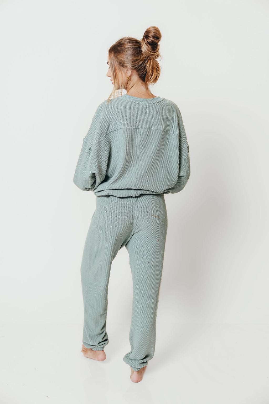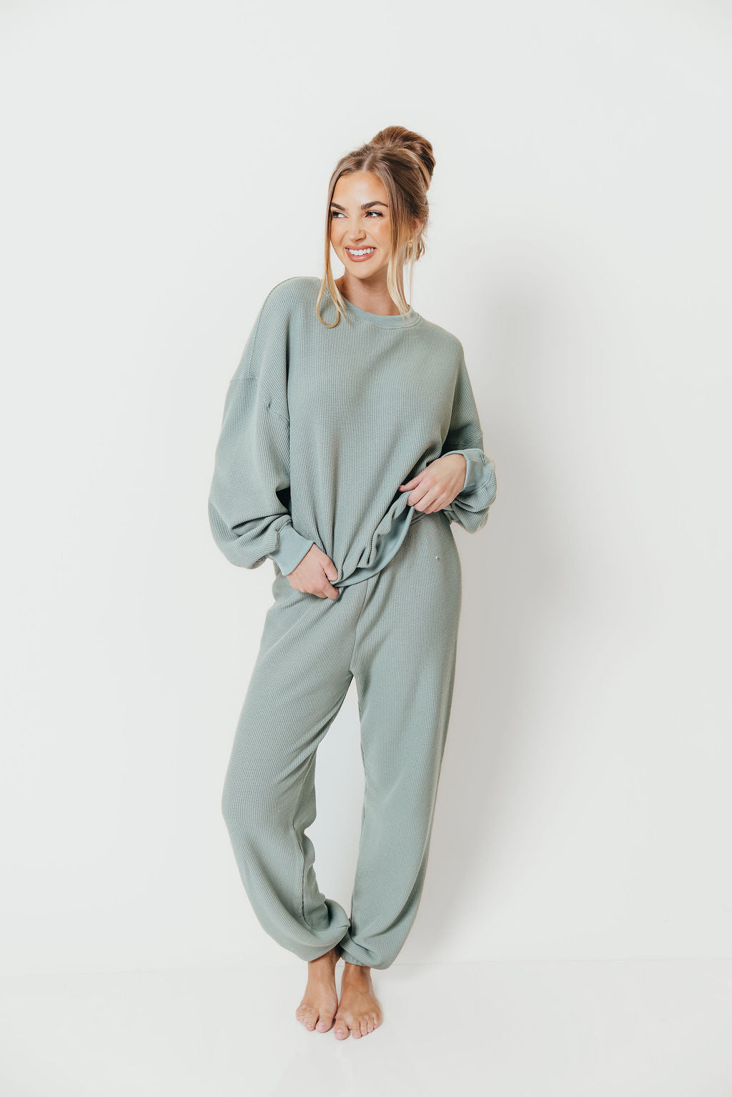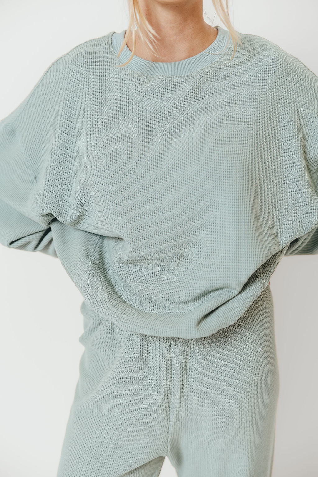 Jessie Soft Terry Waffle Sweatshirt in Sage Green