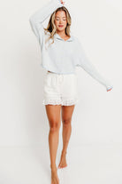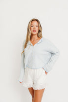 GARMENT DETAILS: Soft and feminine cardigan with long sleeves and rolled hem. Features dainty button front closure.