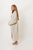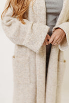 Amina Ribbed Knit Long Cardigan Jacket in Light Taupe
