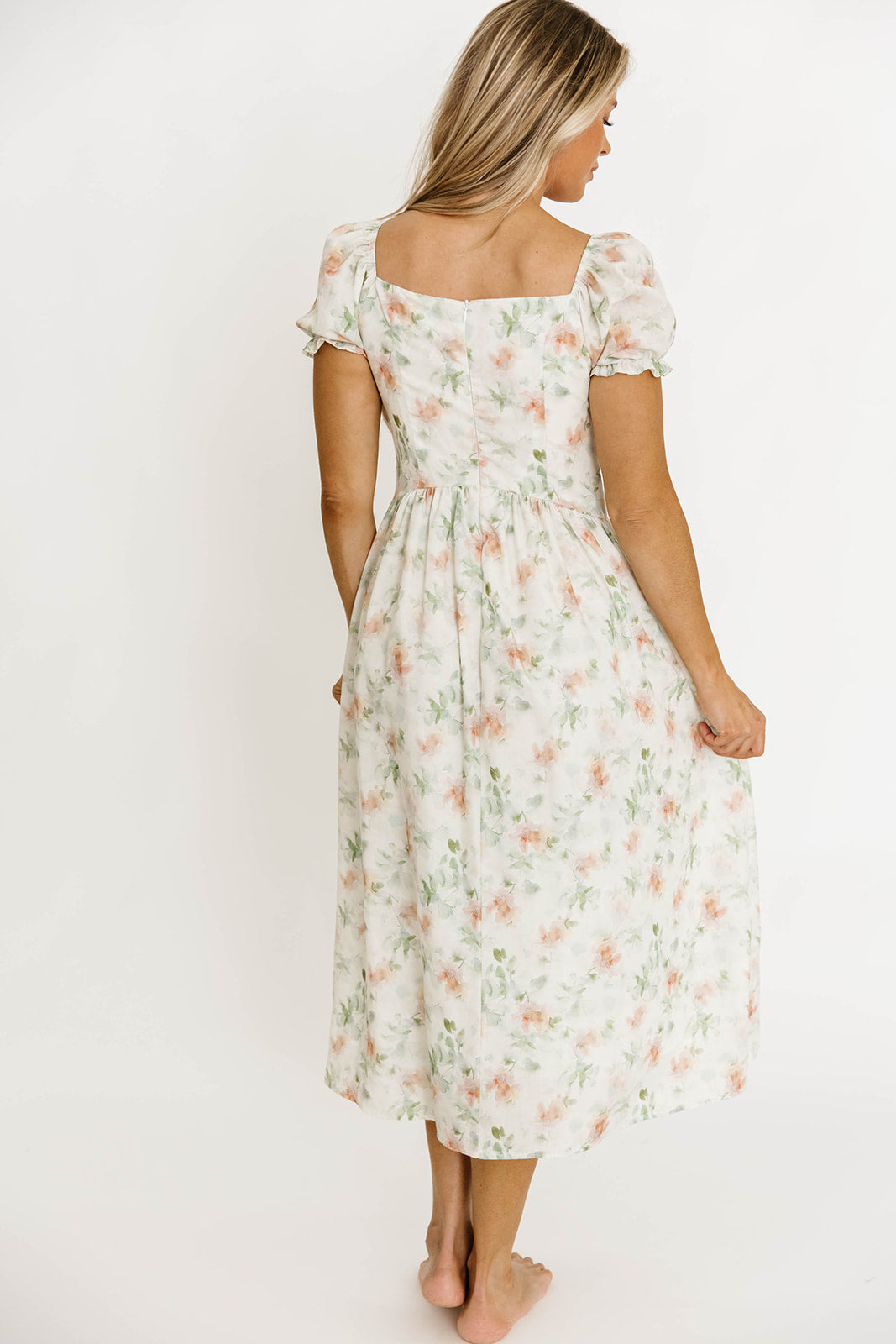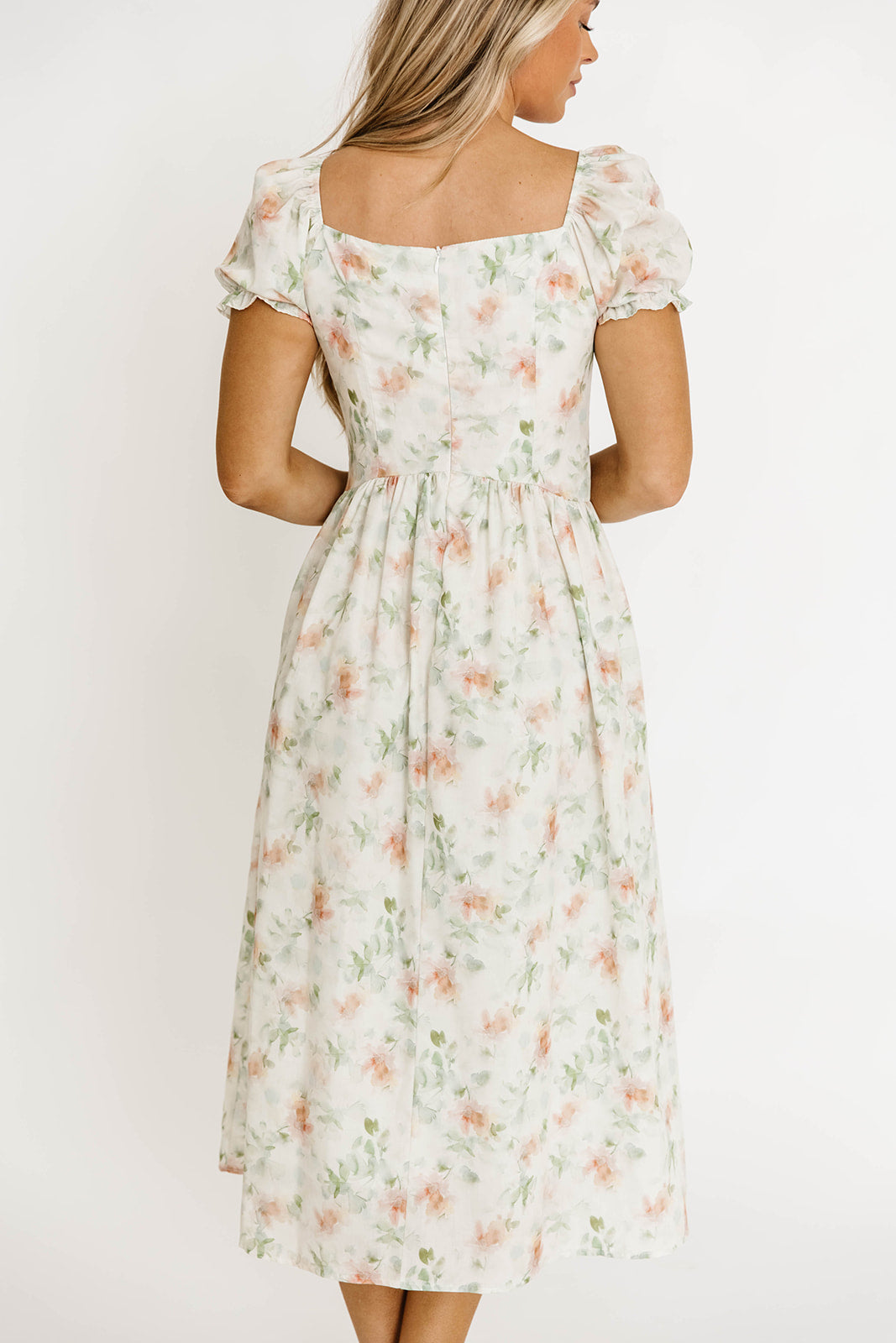 Azalea Ruched Puff Sleeve Midi Dress in Ivory Floral *Final-Sale*