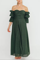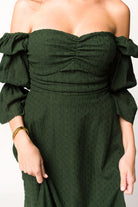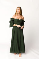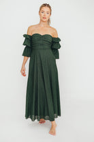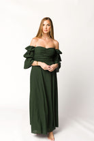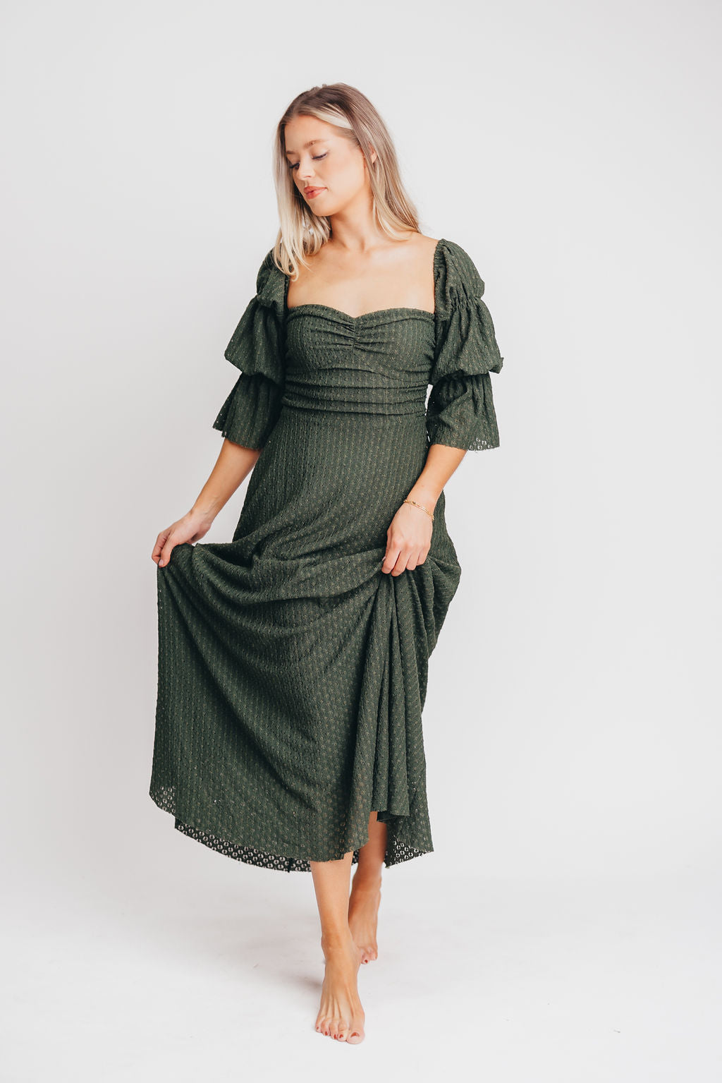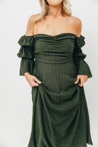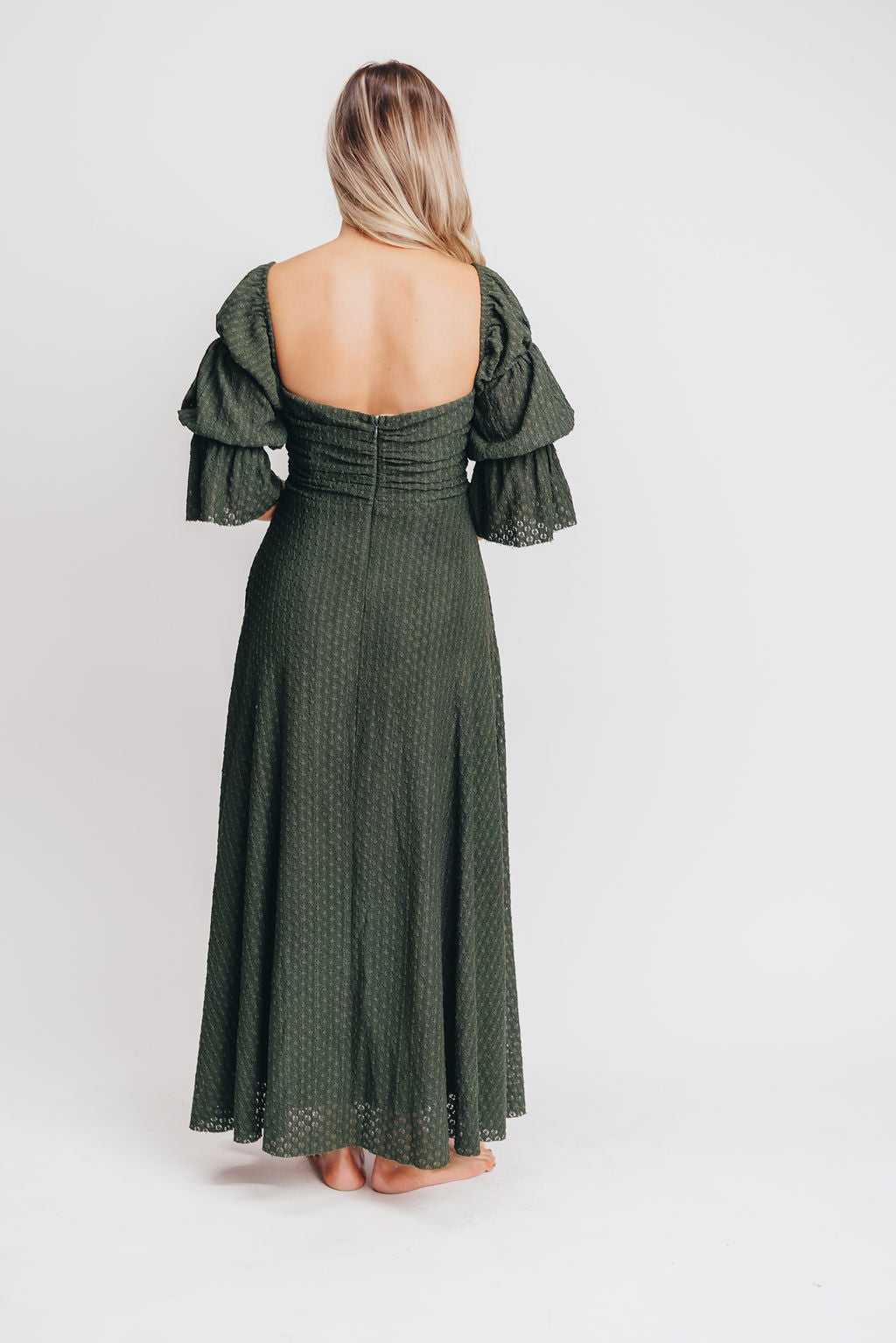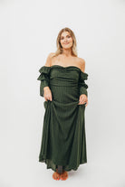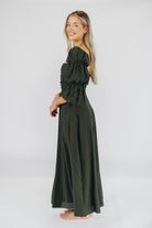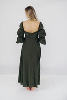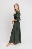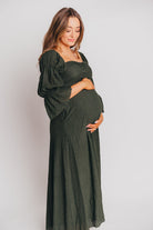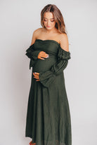 Corrine Tiered Sleeve Maxi Dress with Pockets in Hunter Green - Bump Friendly
