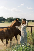 The Seraphine Maxi is absolutely irresistible! This gorgeously feminine gown features a delicate lace overlay and flattering fit-and-flare silhouette that hugs your curves in all the right places. Combining style AND comfort, this Worth Collective exclusive offers a stretchy design that even accommodates a baby bump! It's a stunning choice for any special occasion.