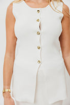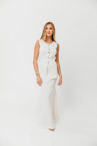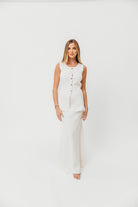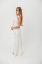 Premium Lauri Sleeveless Button Down Top and Maxi Skirt Set in Off White *Final-Sale*