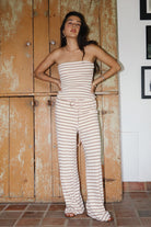 Lawrence Striped Drawstring Wide Leg Pants in Cream/Pink