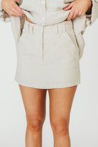GARMENT DETAILS: Lightweight linen skort with belt loops and pockets.