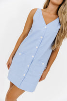 Tasi Contrast Stitch Mini Dress in Chambray *Final-Sale*