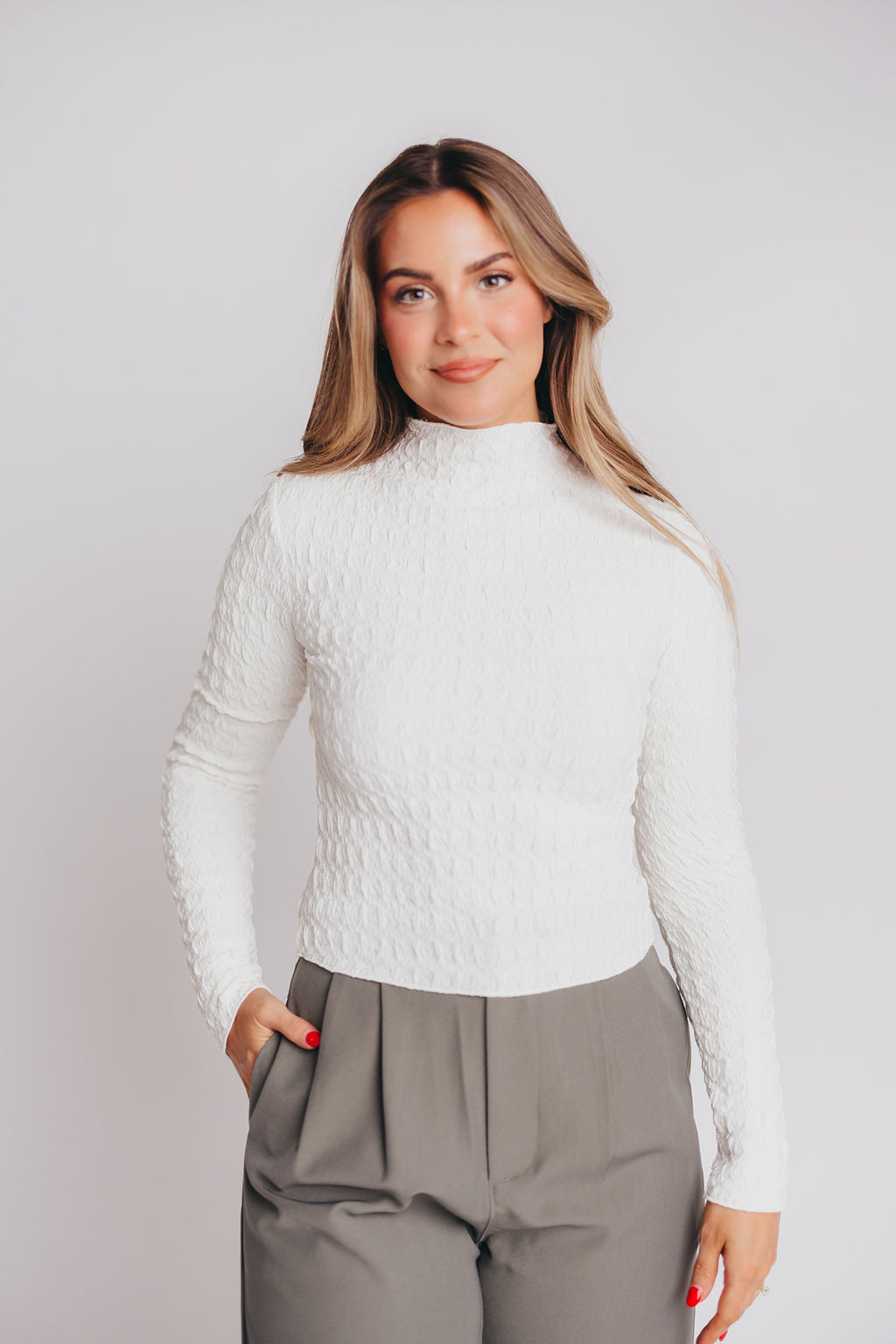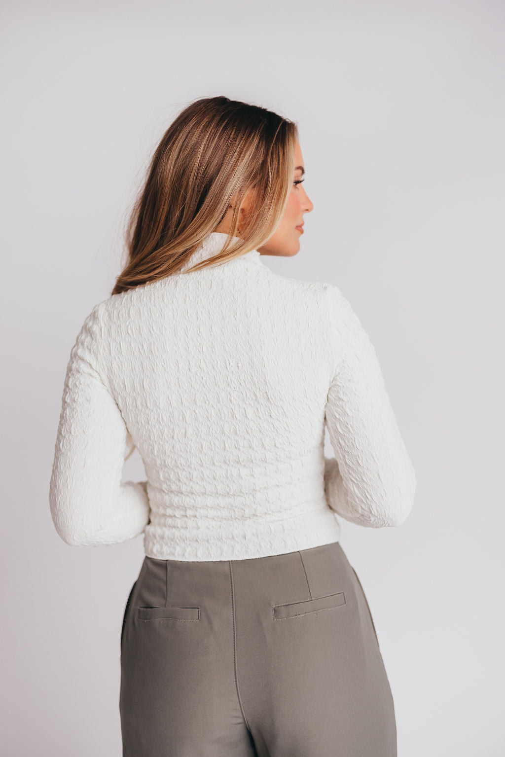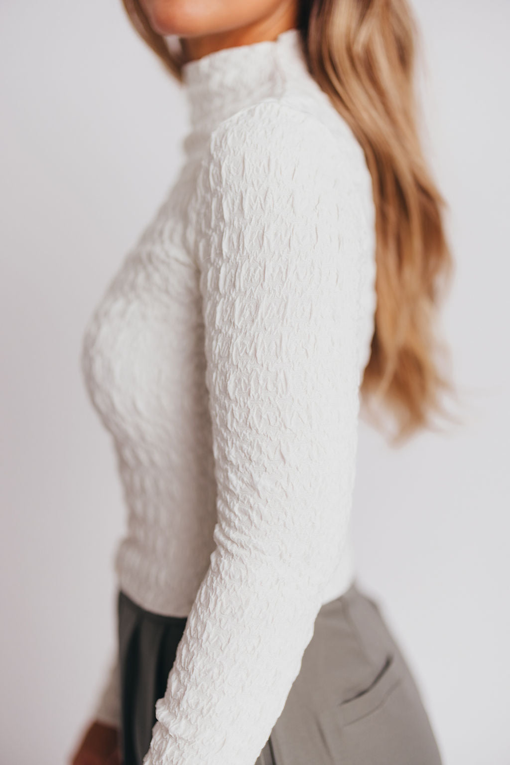 Max Textured Mockneck Top in Off-White