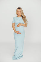 The Charlie Ribbed Maxi Dress in Baby Blue -Bump Friendly