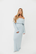 Nora Knit Maxi Dress in Dusty Blue - Bump Friendly