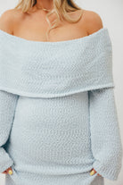 GARMENT DETAILS: Gorgeous chenille-like knit maxi dress with folded off-the-shoulder neckline, flared long sleeves, and a fit-and-flare skirt. Features a full lining (neck to hem) but still very lightweight.