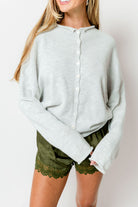 GARMENT DETAILS: Soft and feminine cardigan with long sleeves and rolled hem. Features dainty button front closure.