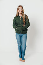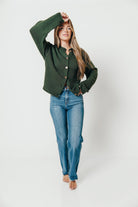 This rich, emerald-hued cardigan will keep the winter blues away! The Hannah Cardigan features an elegant silhouette and beautiful accent buttons, making this a charming choice for layering or wearing solo.