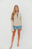 Cozy up in style with our Blythe Sweater! This delightful knit features a fun snap collar and plush, relaxed fit, while the oatmeal shade pairs with everything in your closet! It's perfect for those "I want to be comfy but still look put-together" days!