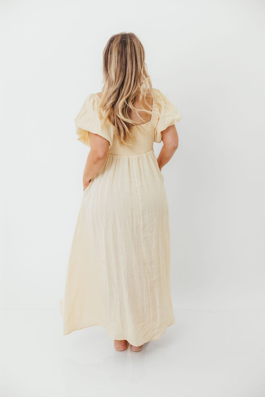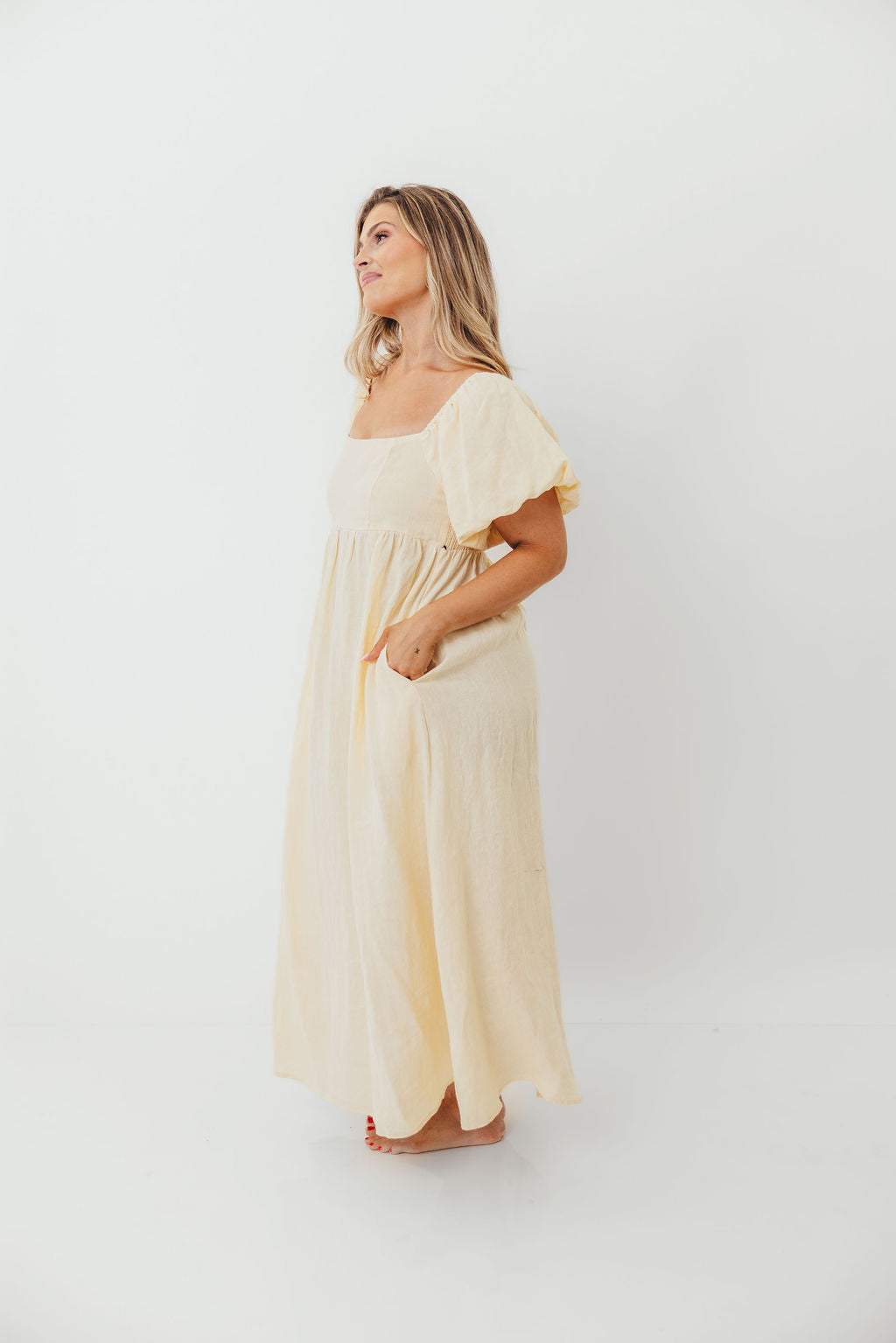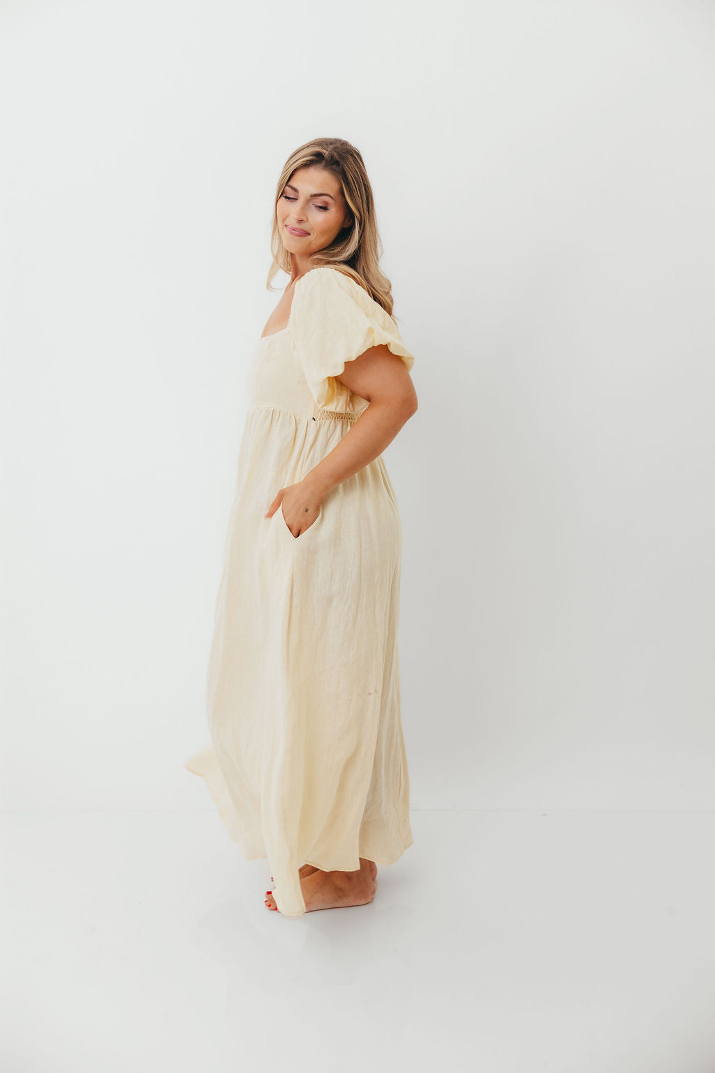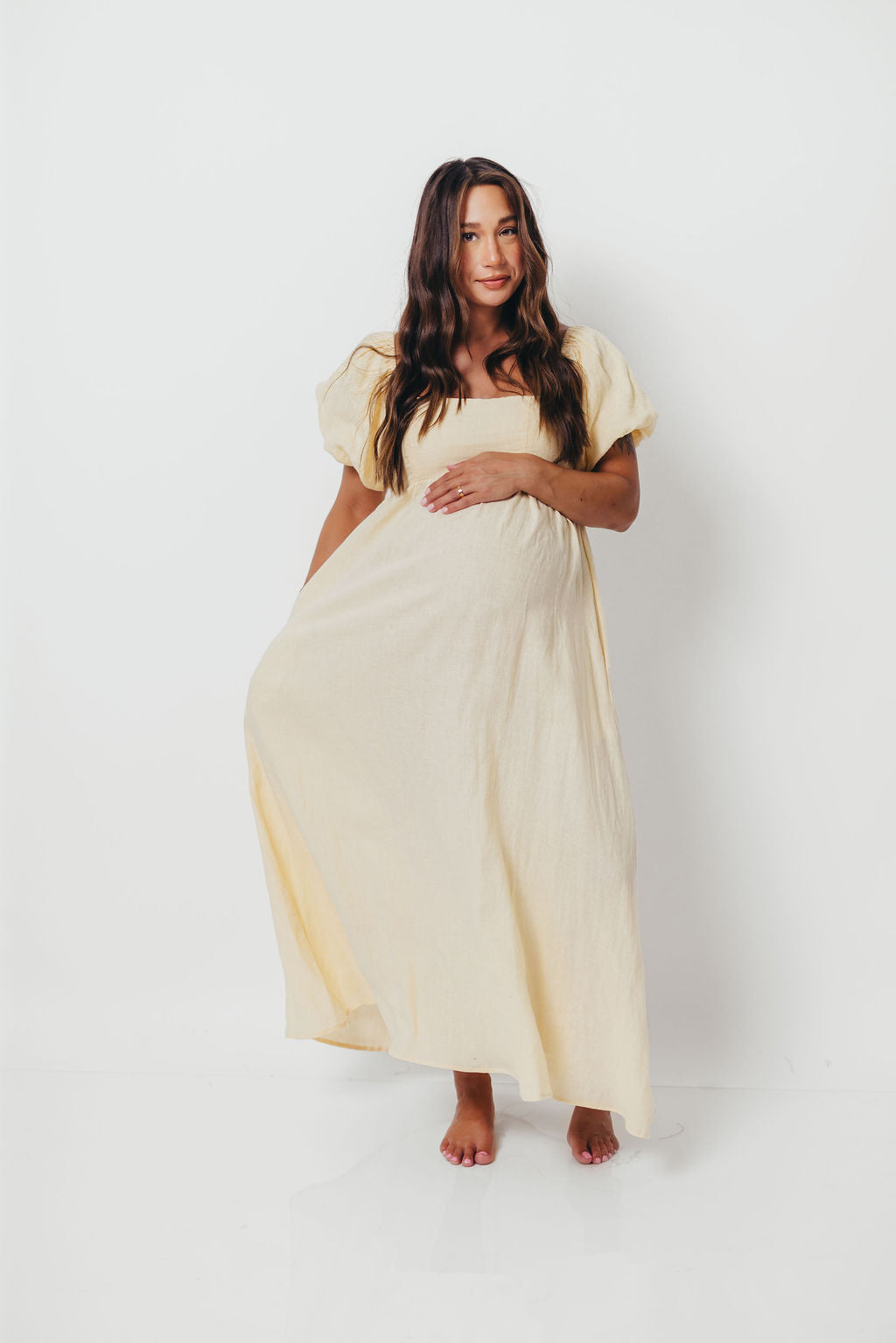 Candace Woven 100% Linen Maxi Dress in Soft Yellow - Bump Friendly *11/7 PRE-ORDER*