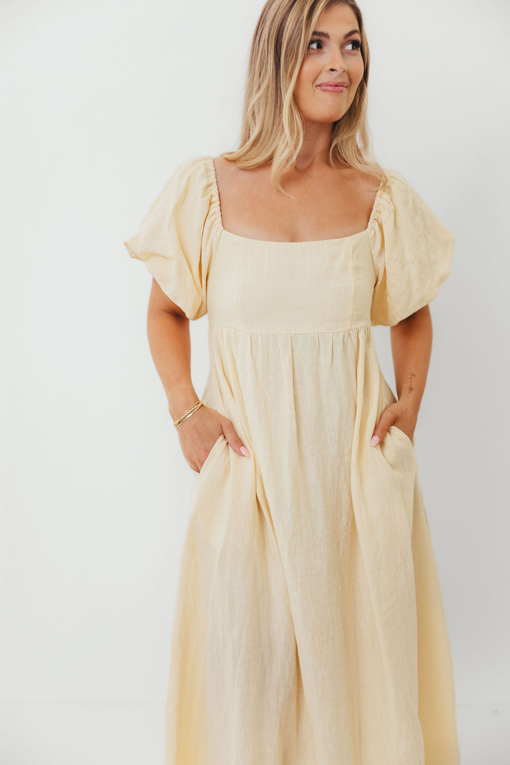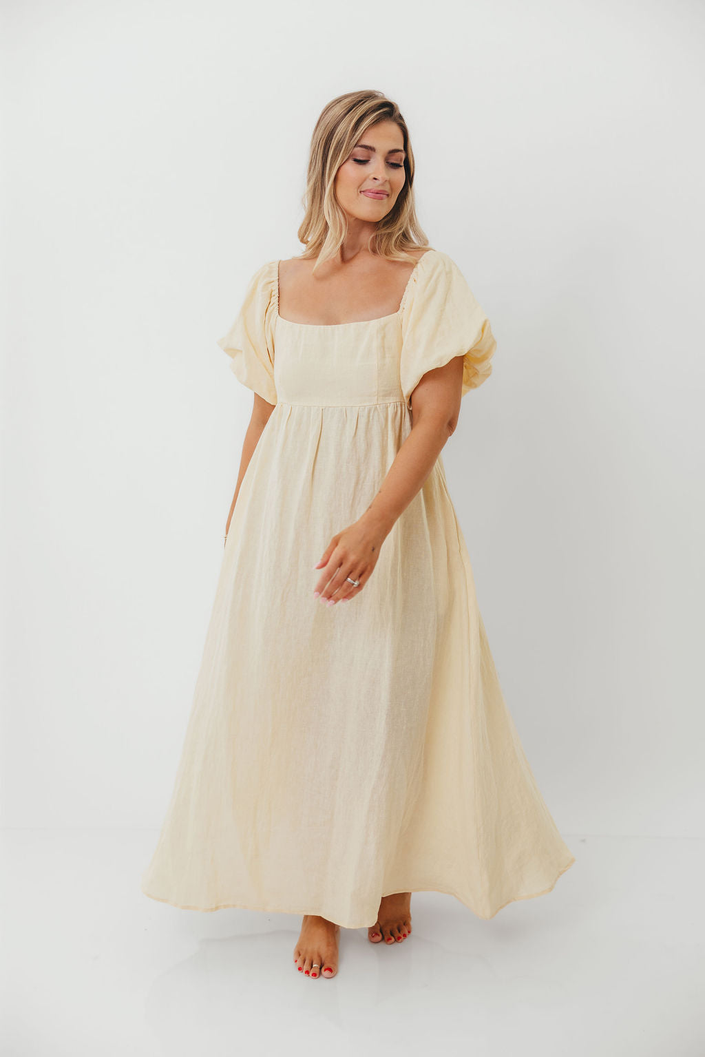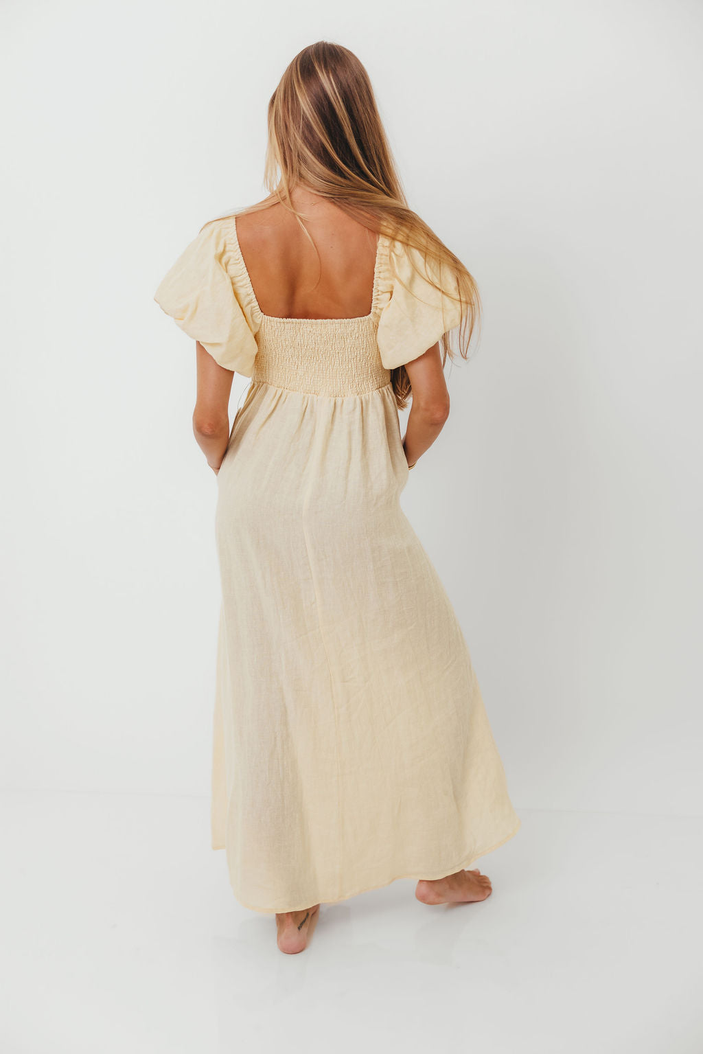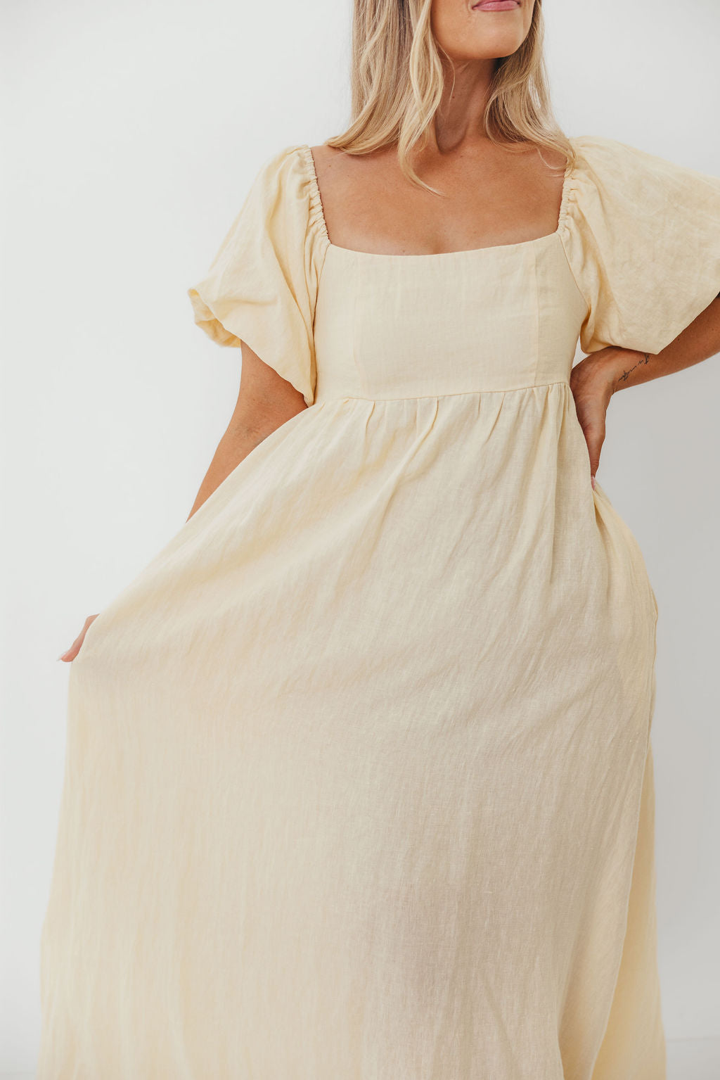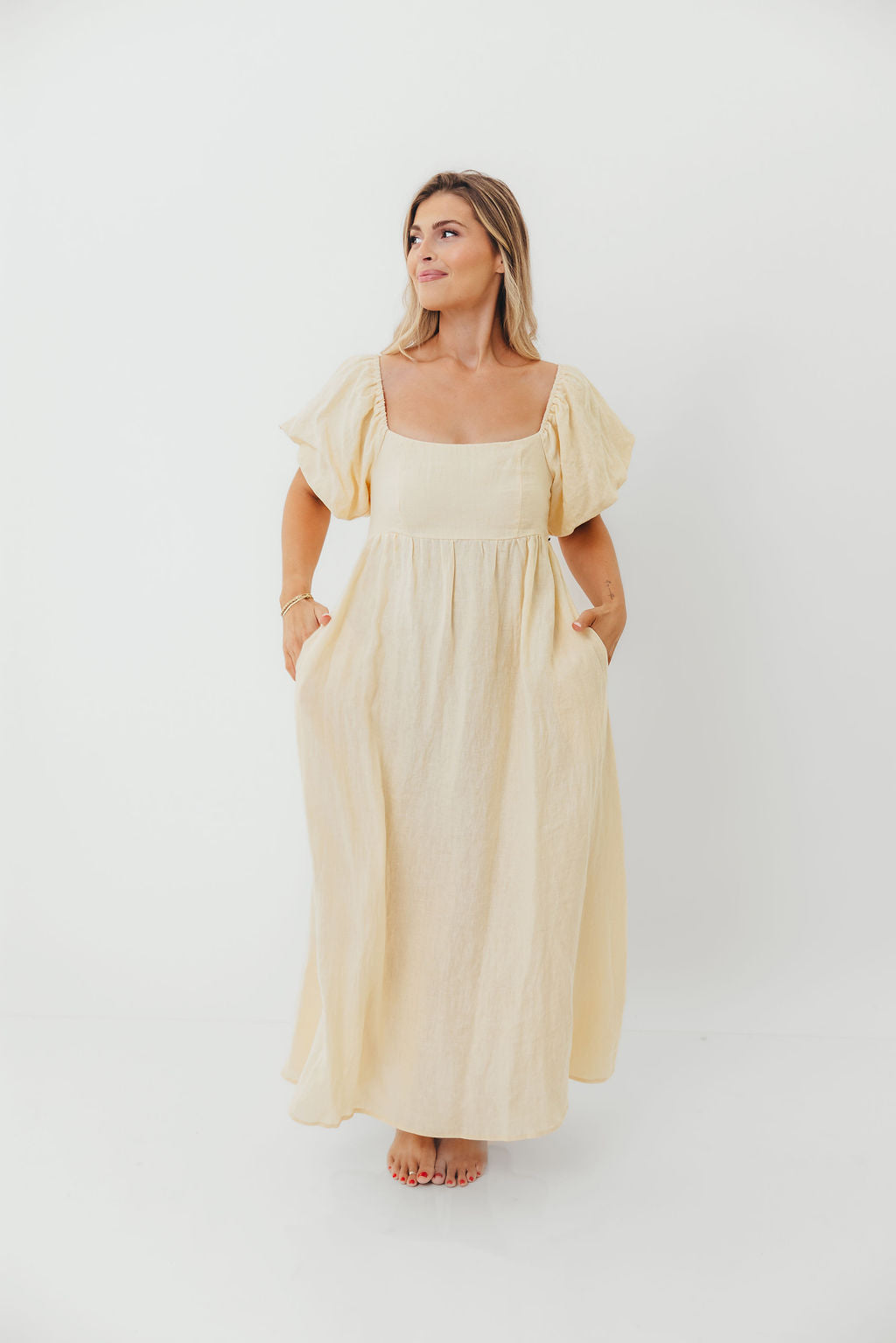 Candace Woven 100% Linen Maxi Dress in Soft Yellow - Bump Friendly *11/7 PRE-ORDER*