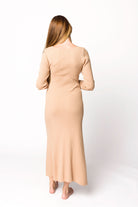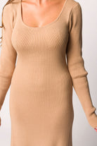 GARMENT DETAILS: Soft, midweight Viscose-blend knit maxi dress with scooped neckline, long sleeves, and a fit-and-flare silhouette.