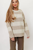 GARMENT DETAILS: Soft knit pullover sweater with rounded neckline, dropped shoulders, and ribbed trim, with relaxed silhouette.