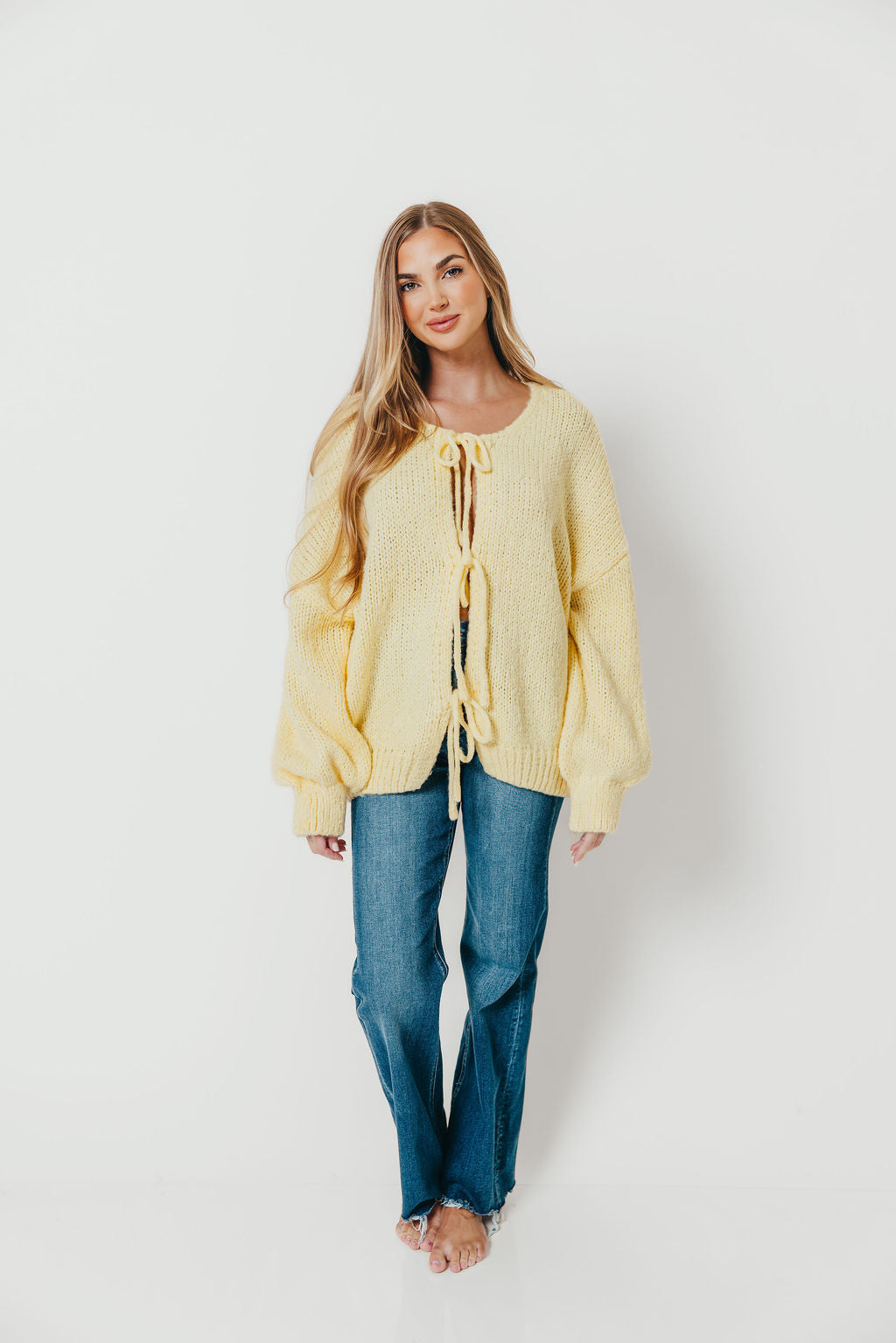 Janine Tie Front Cardigan in Yellow